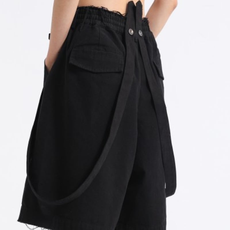 ハイウエストとワイドレッグの組み合わせが、脚長効果と体型カバーを両立するショートパンツ。デストロイ加工が施されたデザインは、カジュアルながらもスタイリッシュな印象を与えます。ルーズなシルエットは、動きやすさとリラックス感を両立。デイリーウェアとしてはもちろん、ストリートスタイルやモードスタイルにもマッチするアイテムです。