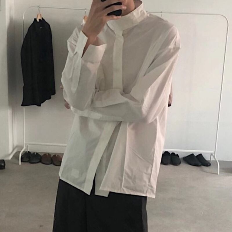 ハーフタートルカラーがアクセントのミニマルシャツ。