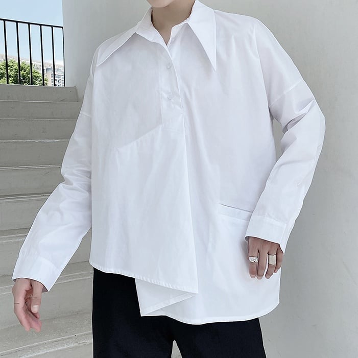 アシンメトリーヘム オーバーサイズ デザインシャツ 2color MTO0187