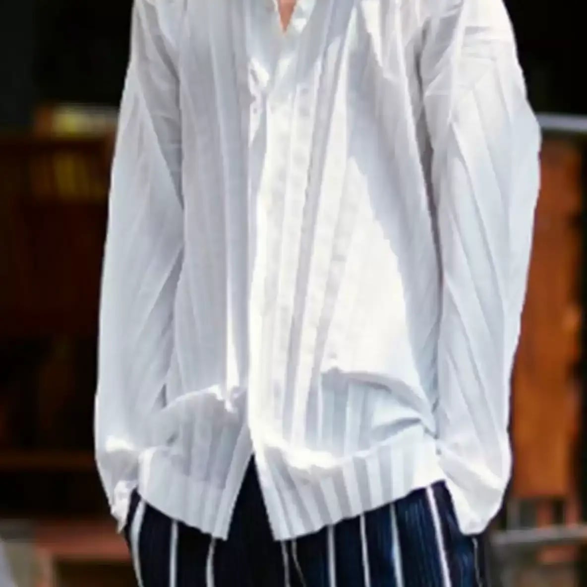 プリーツデザイン フロントボタン 長袖シャツ 2color MTO0188