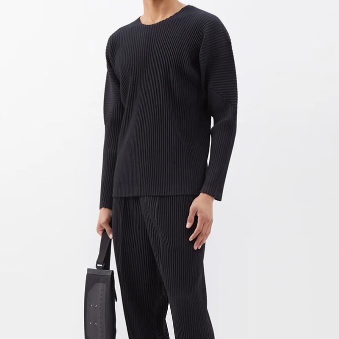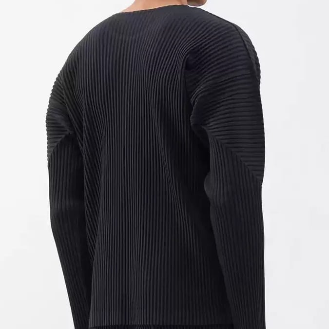 プリーツ加工 クルーネック ロングスリーブ プルオーバー 2color MTO0189