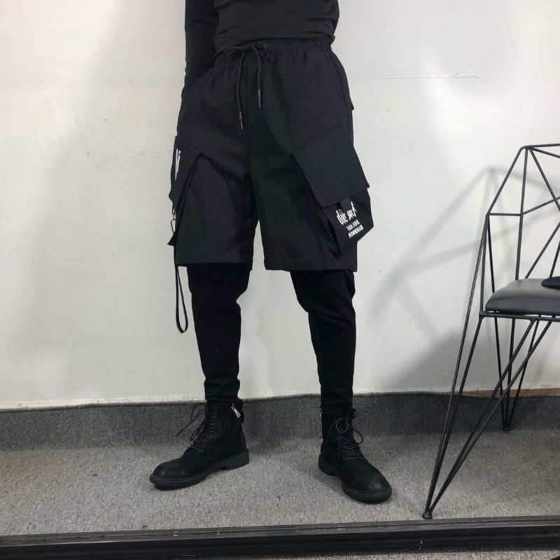 ショートパンツとスキニーパンツを組み合わせた画期的なレイヤードデザイン。大きめのカーゴポケットとロゴラベルで、アーバンストリートスタイルを演出。ドローストリングウエストで快適な着用感を実現したモードな一着。